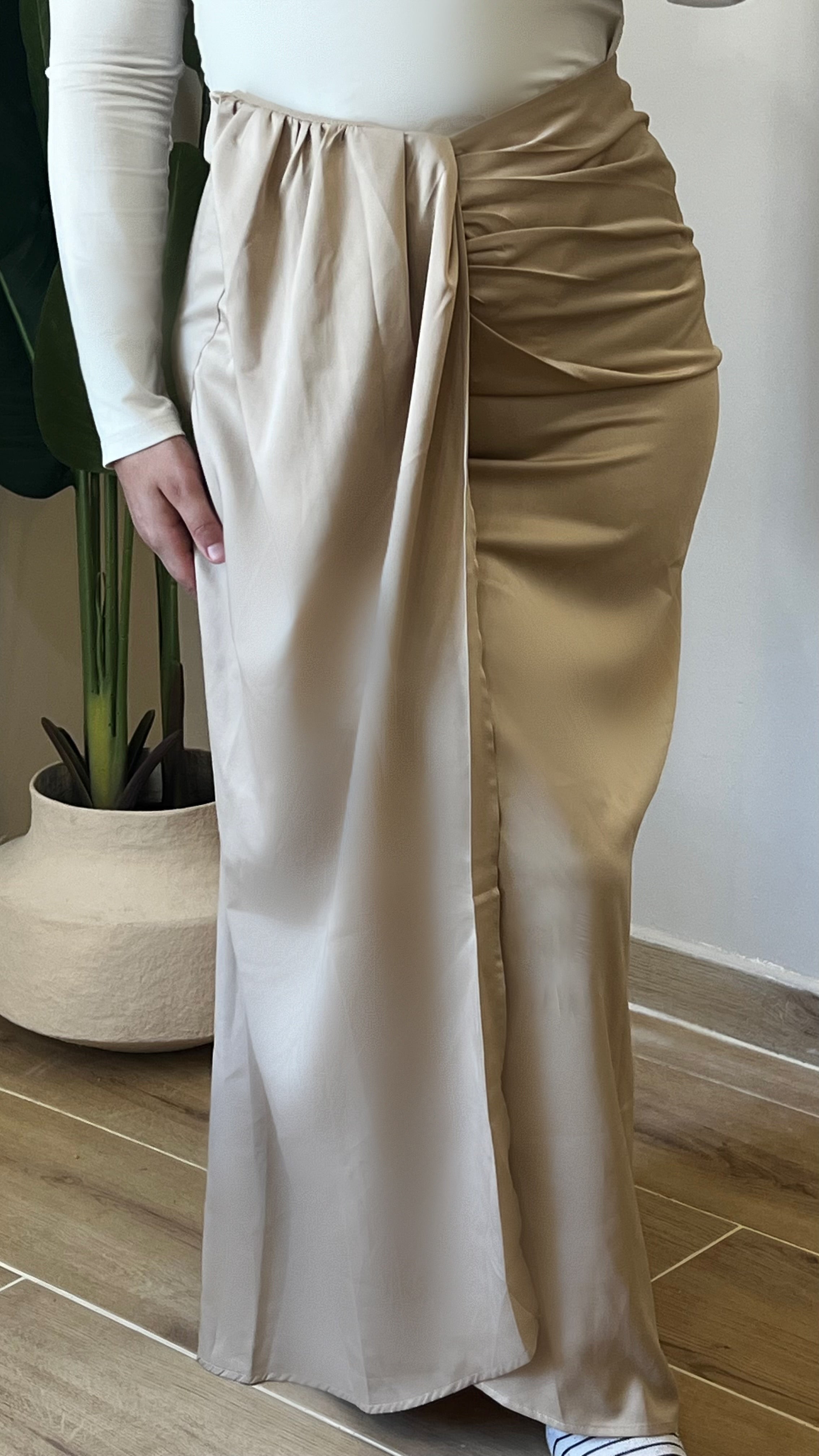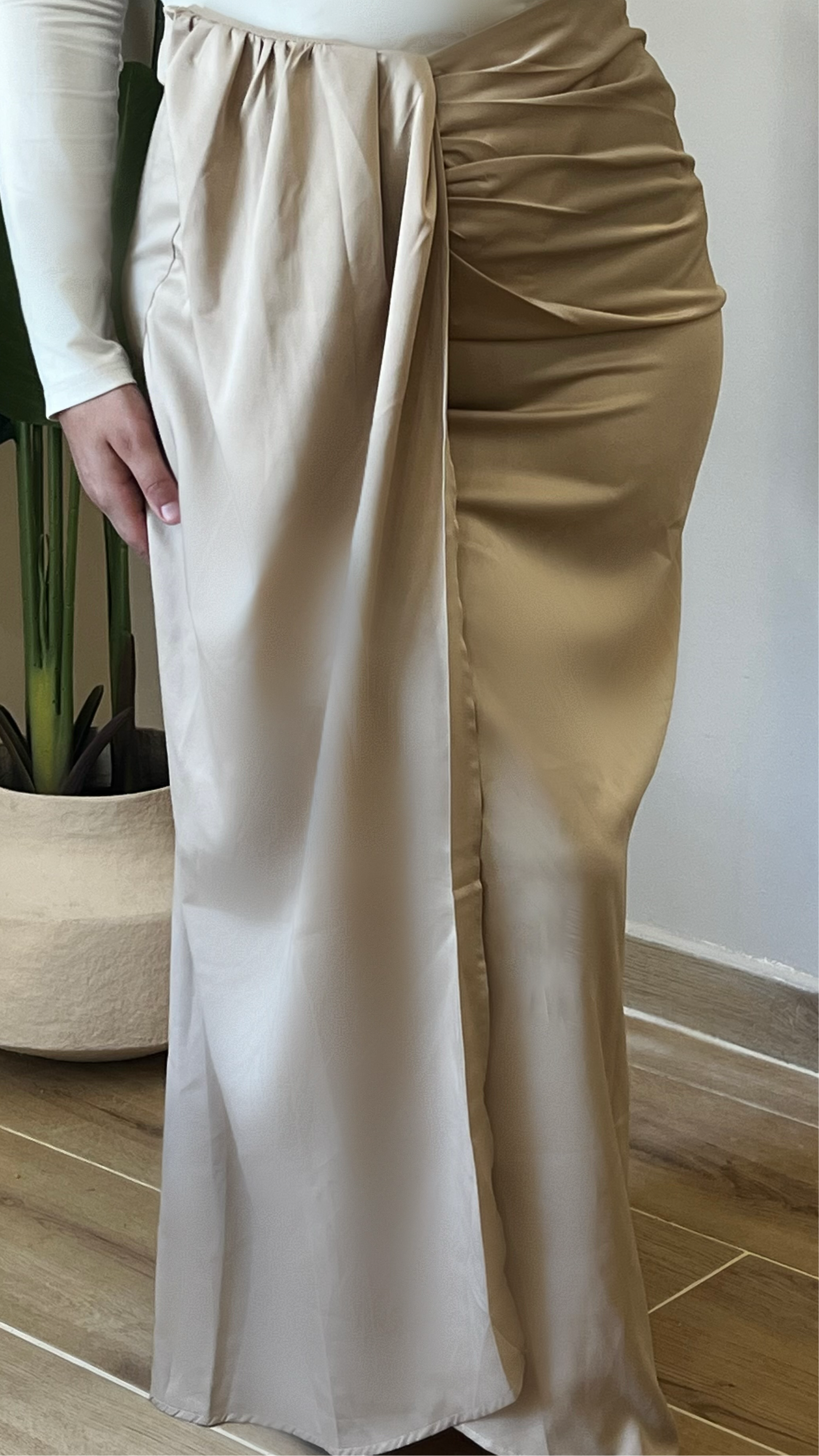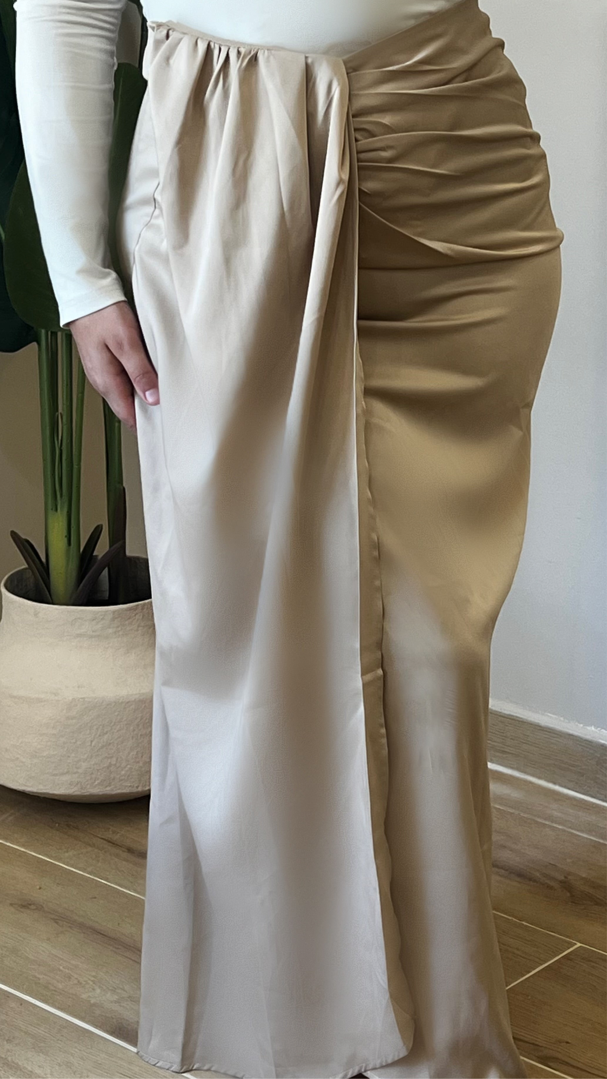 Jupe satinée champagne, parfaite pour vos ootd les plus élégants.
