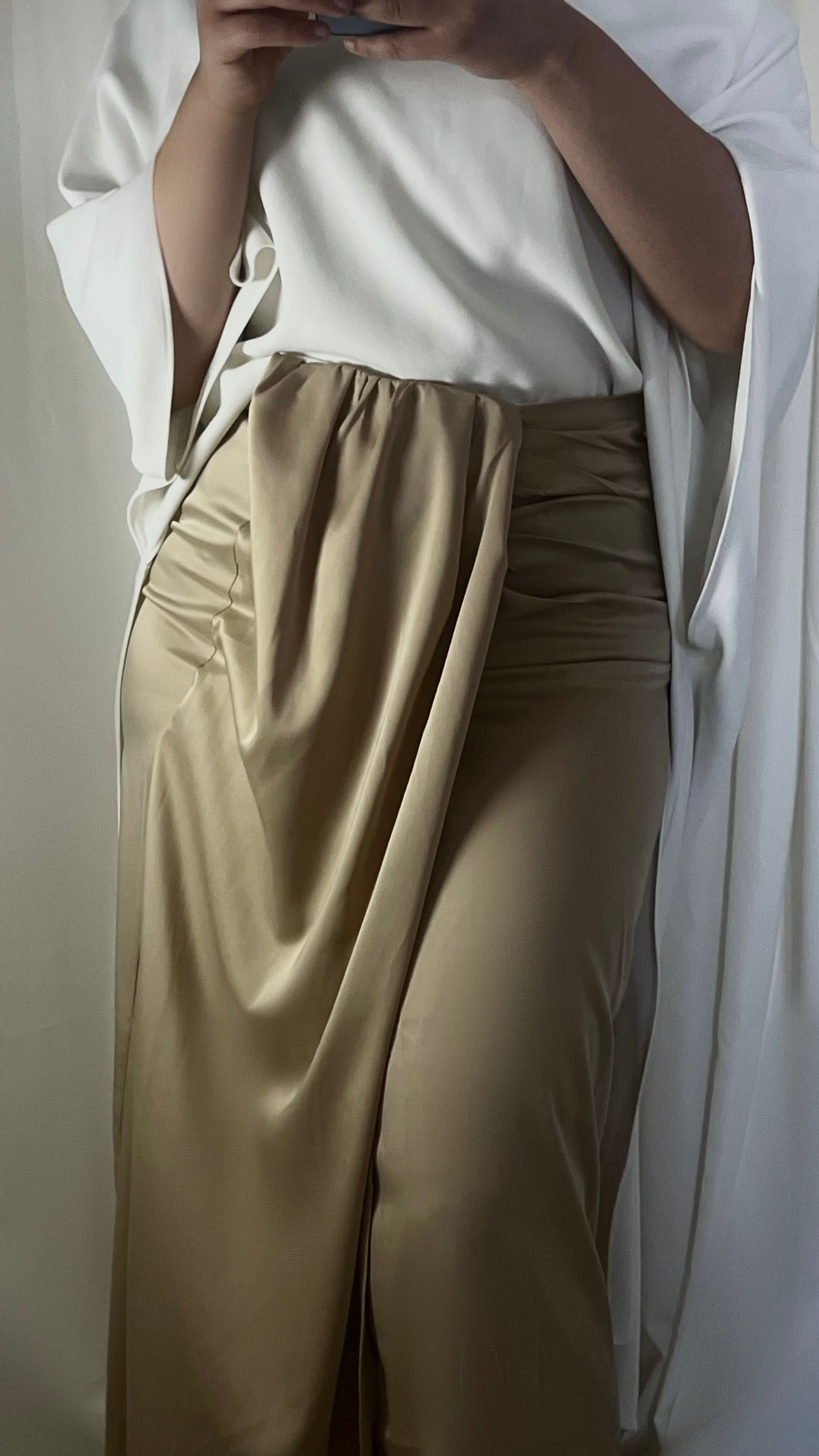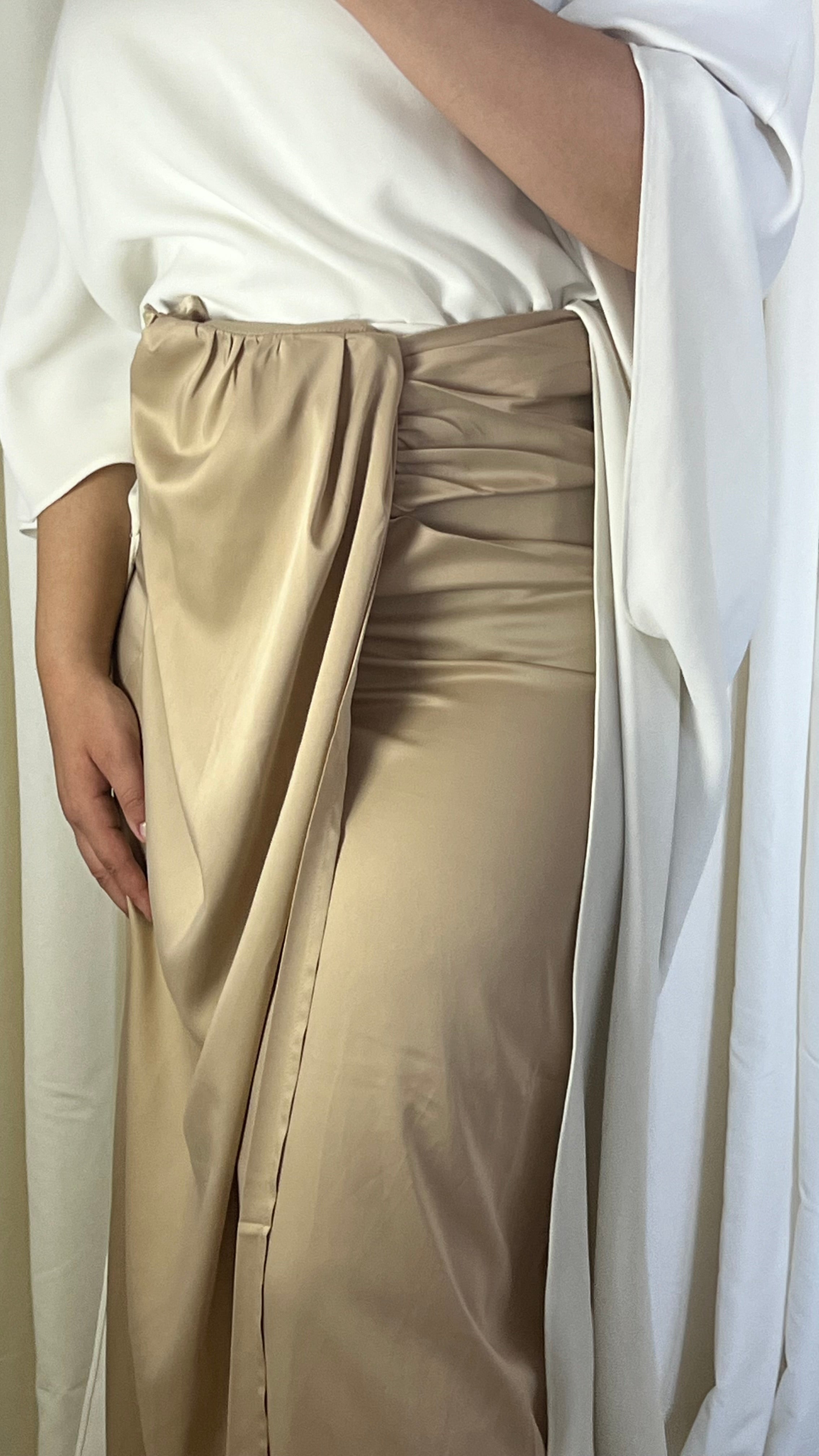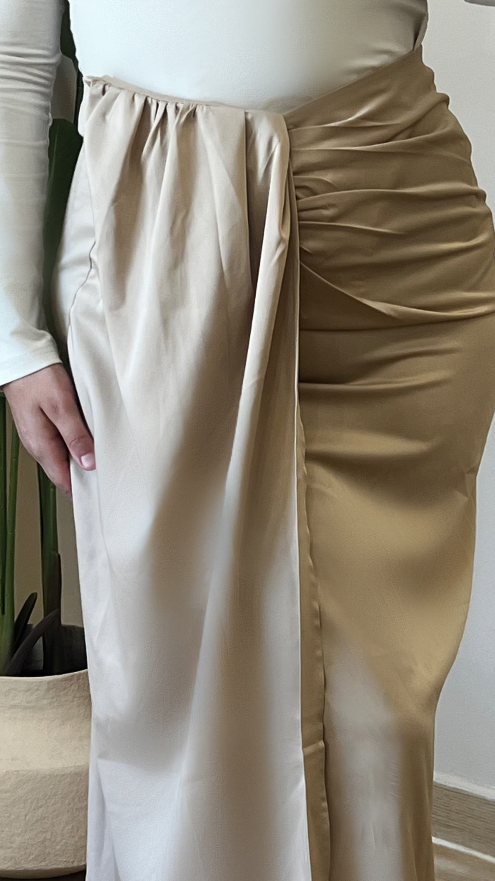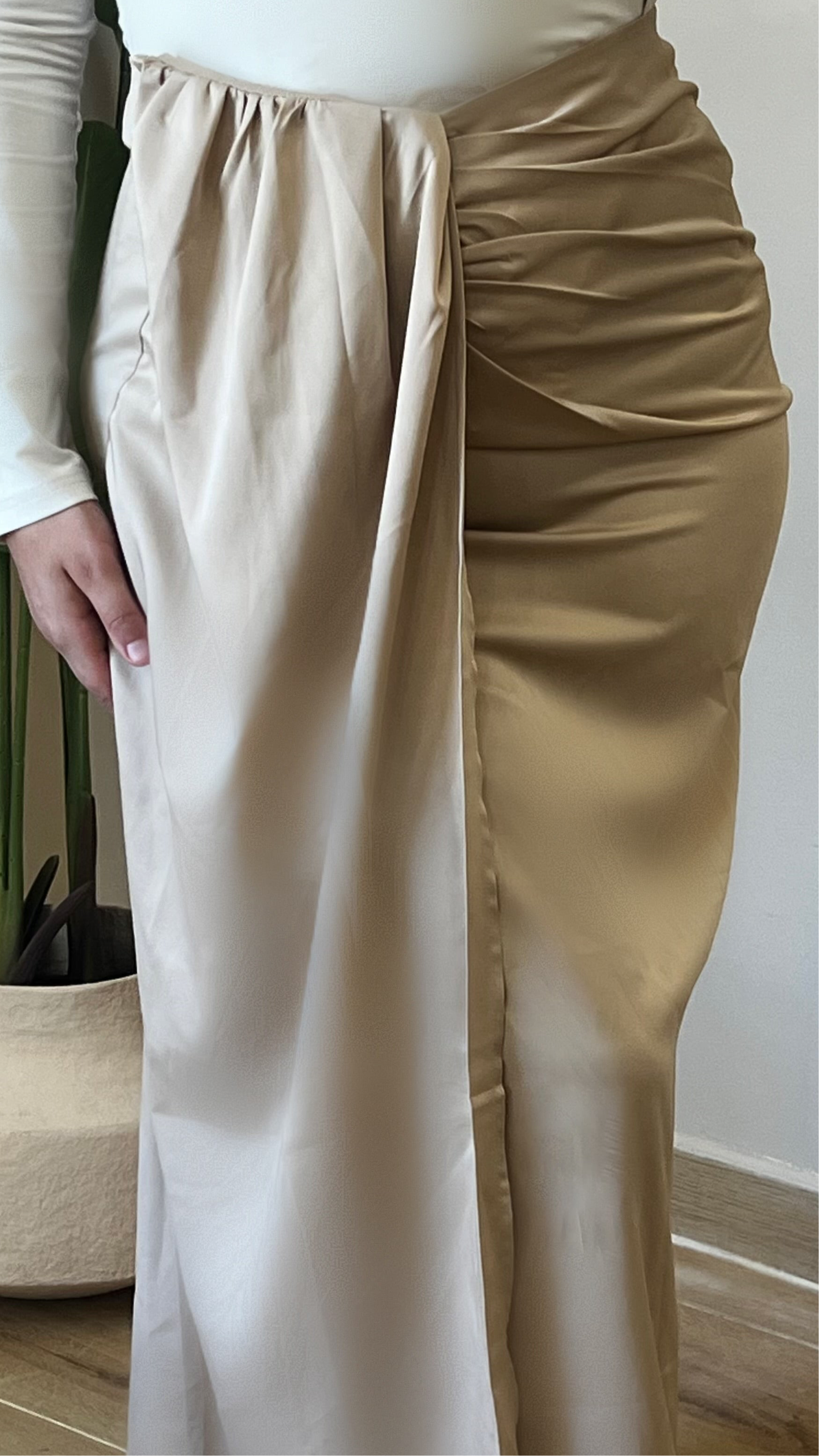 Jupe satinée champagne, parfaite pour vos ootd les plus élégants.