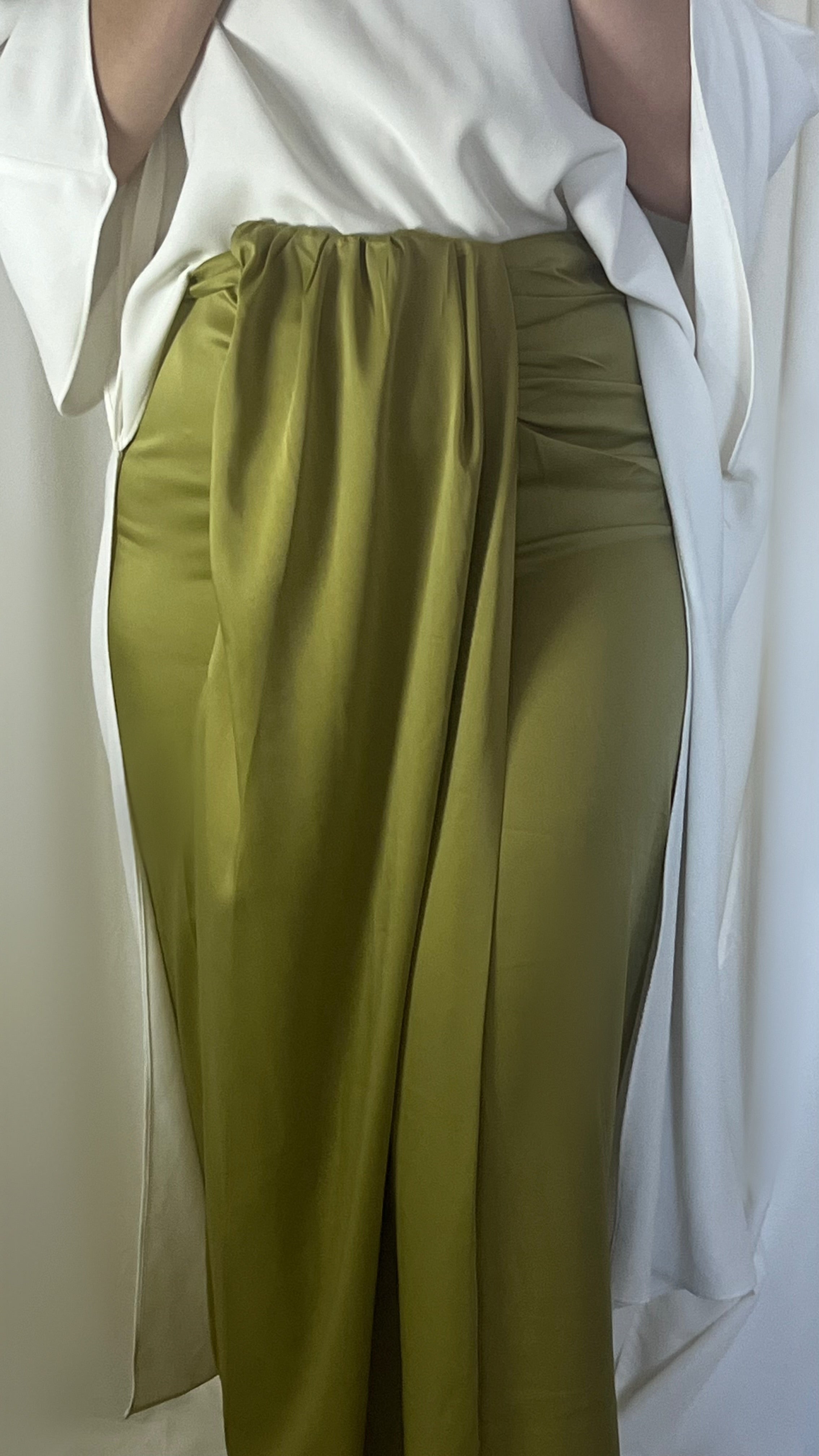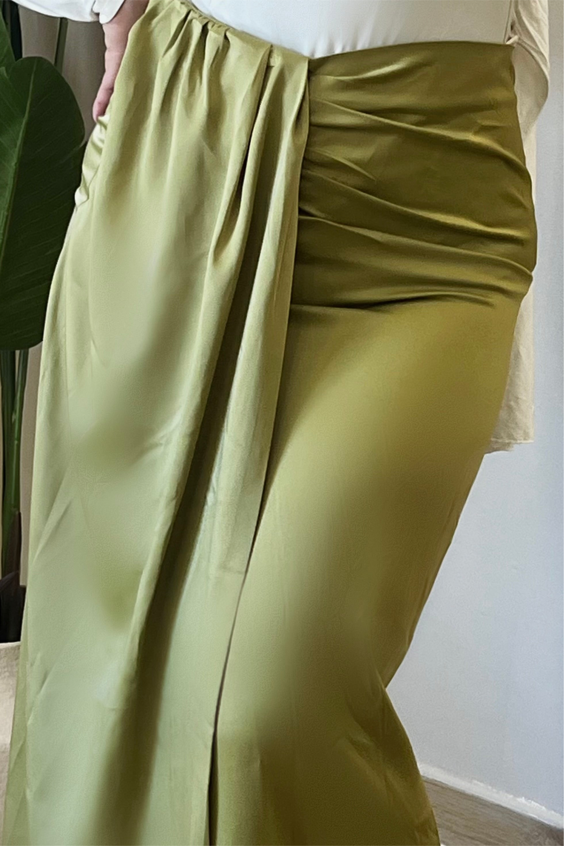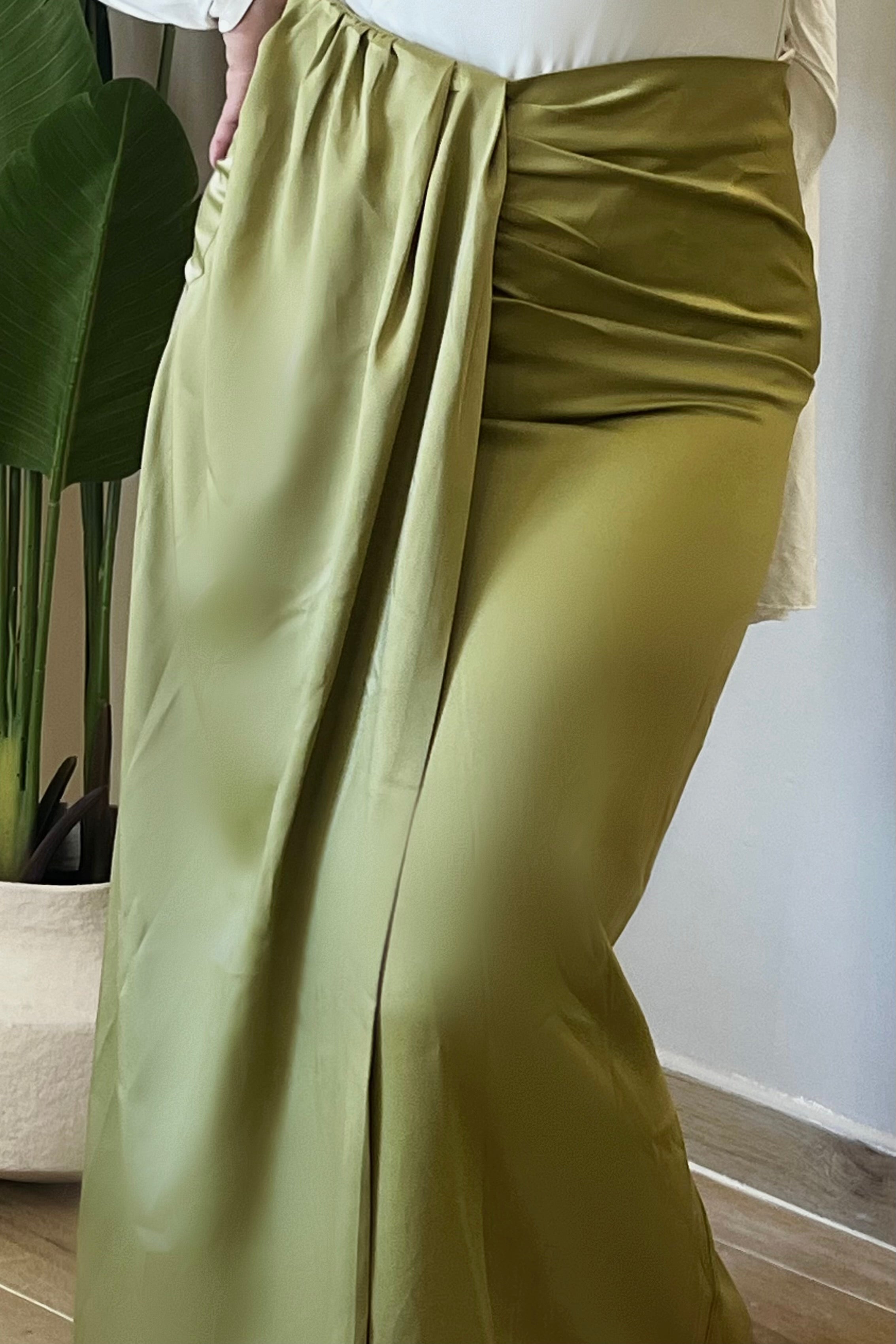 Jupe satinée verte, parfaite pour vos ootd les plus élégants.