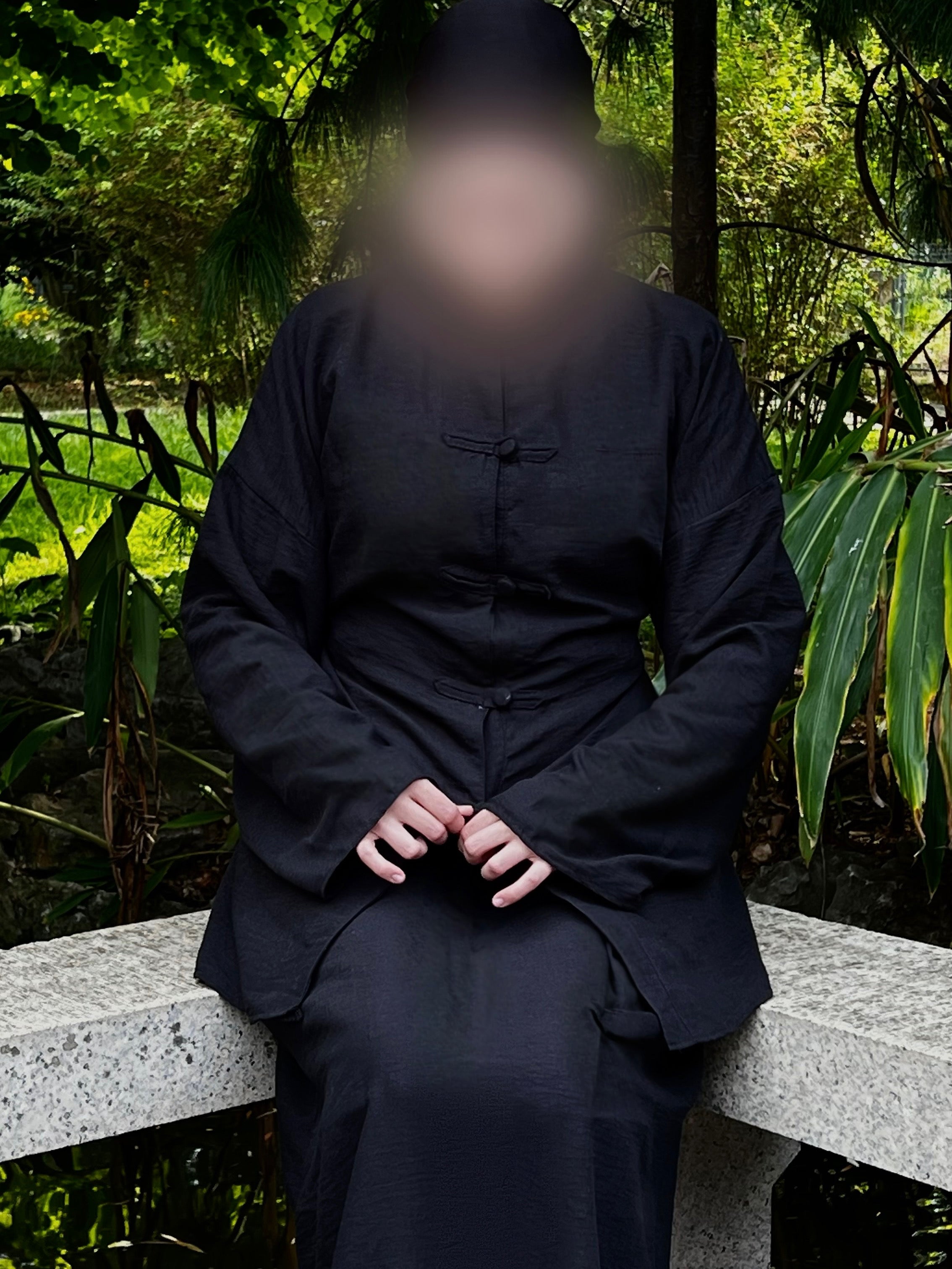 Kimono ajustable à la taille, jupe élastique à poches.